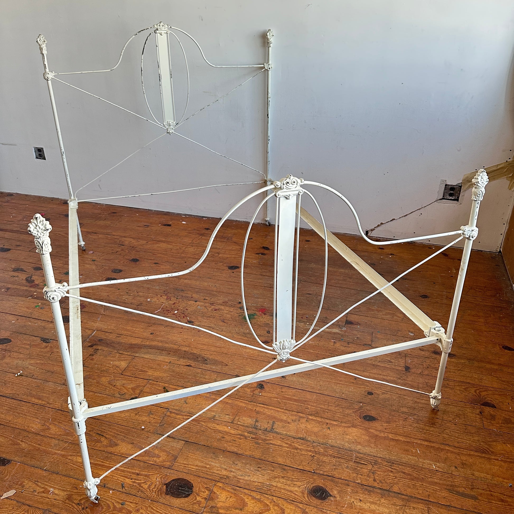 BG006 DISTRESSED WHITE WROUGHT IRON BED FRAME (FULL)
