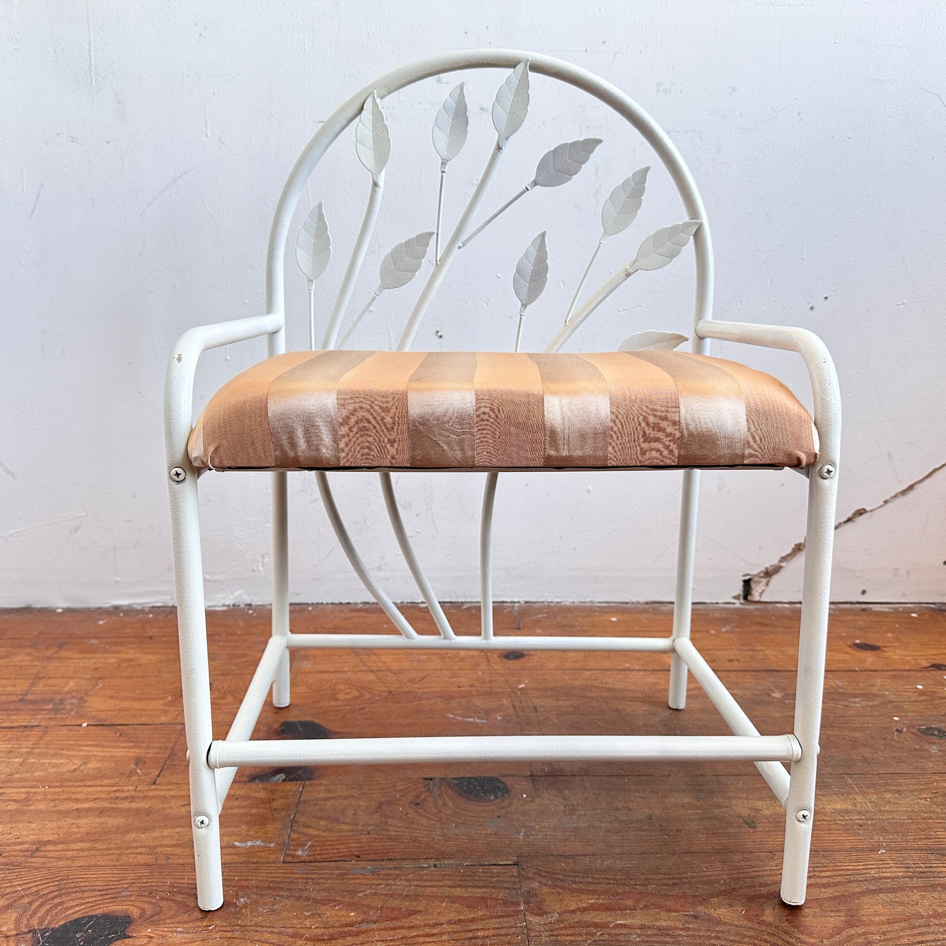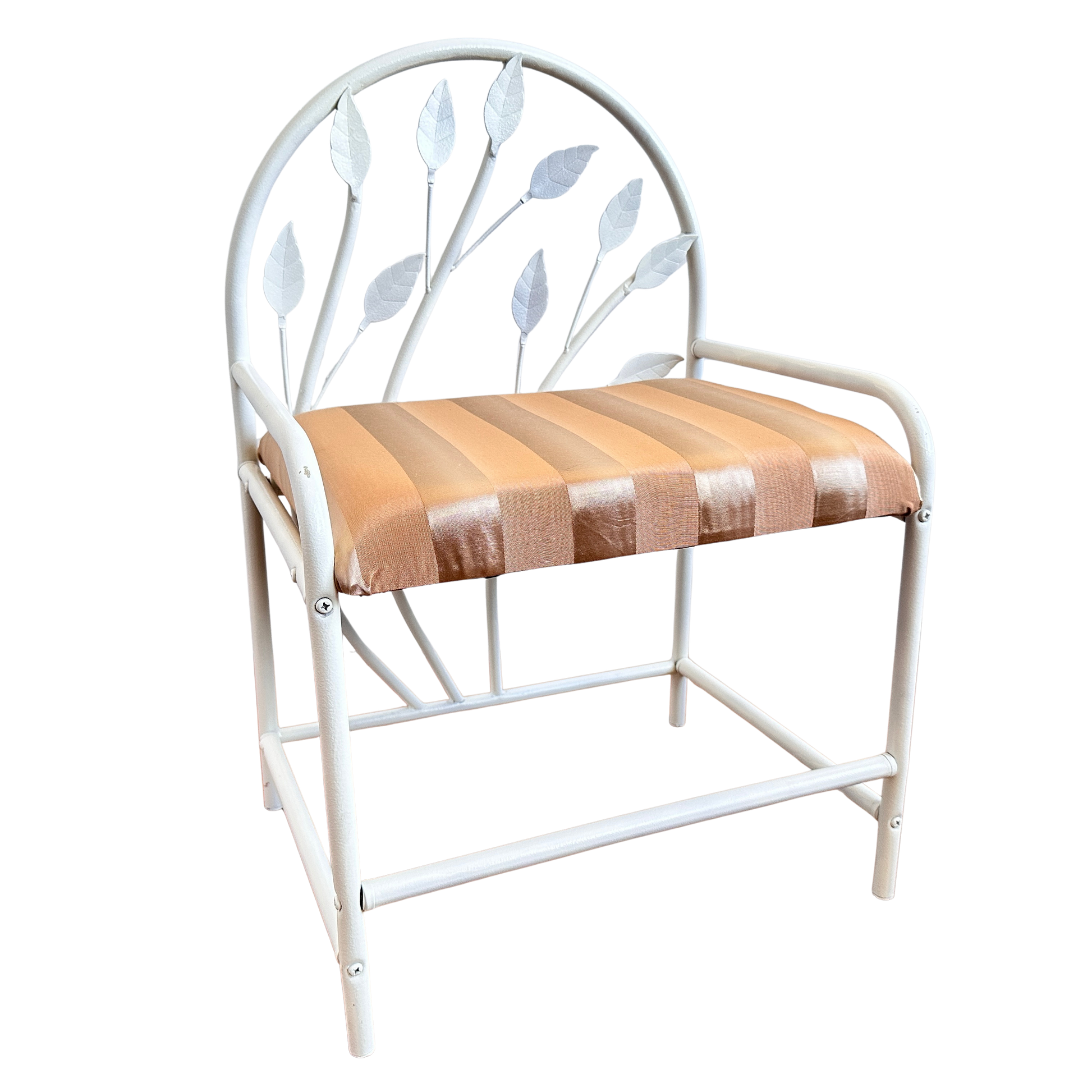CH066 WHITE LEAF VANITY CHAIR WITH STRIPED UPHOLSTERY