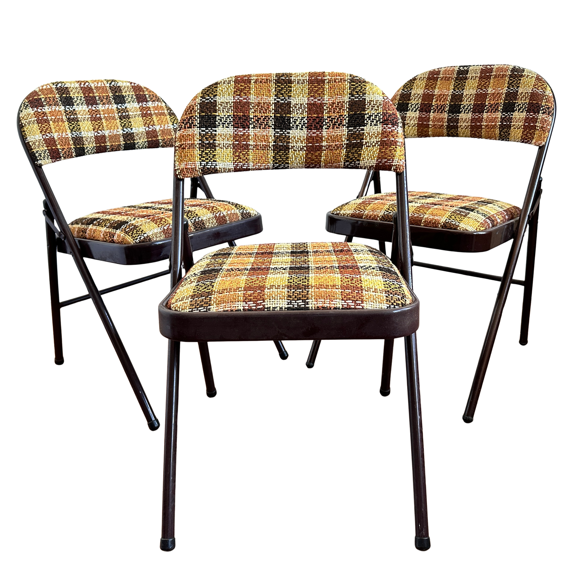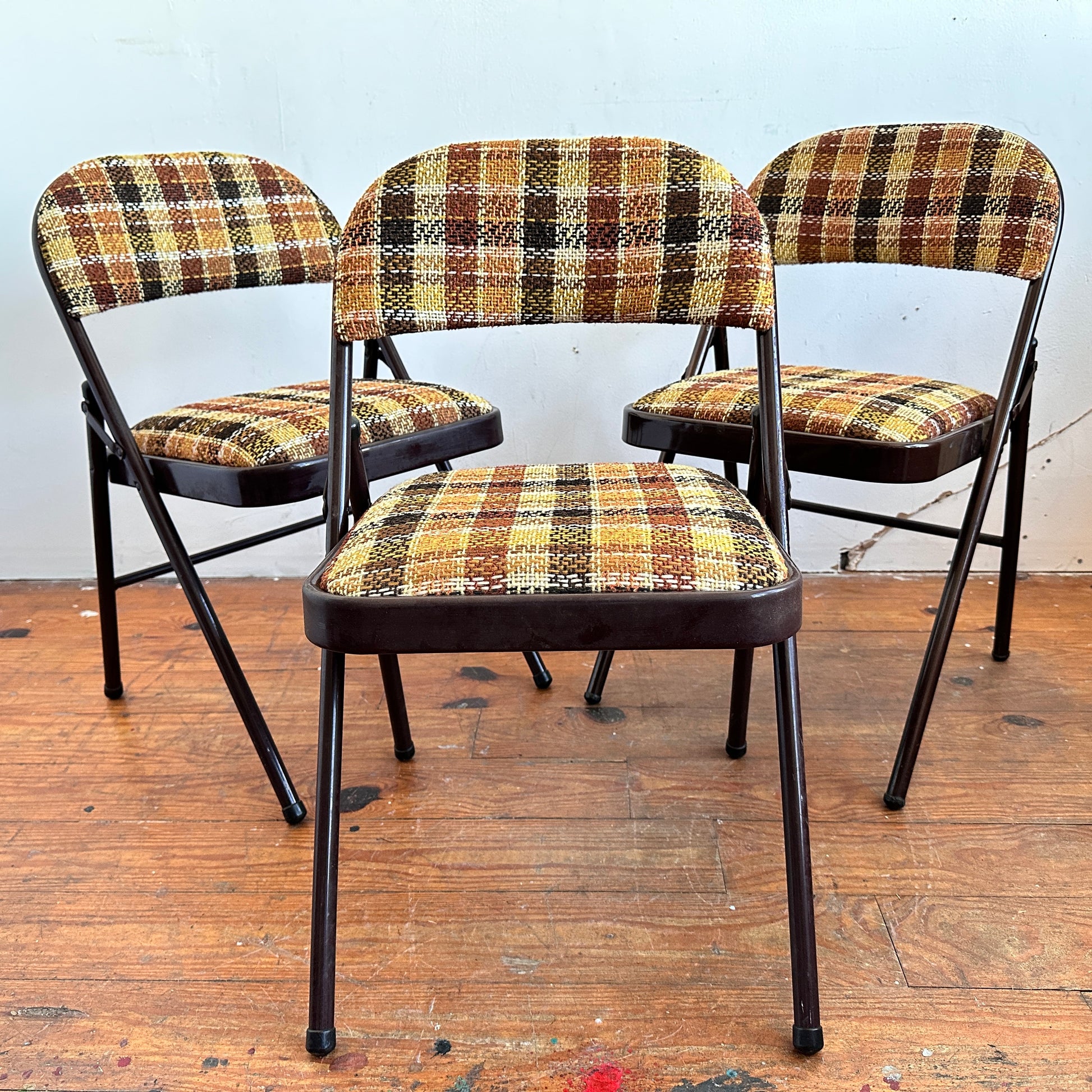 FC044 METAL FOLDING CHAIRS WITH PLAID UPHOLSTRY