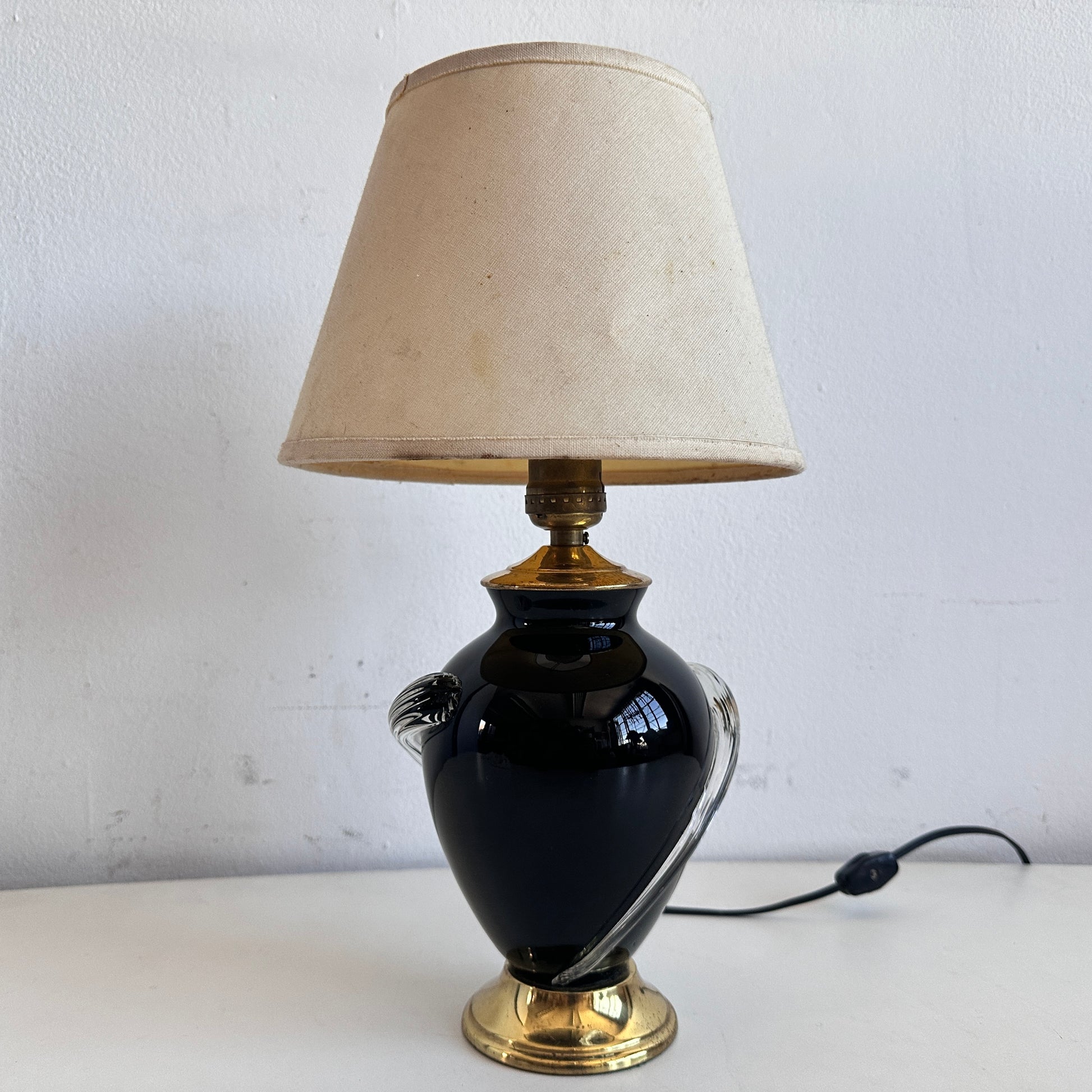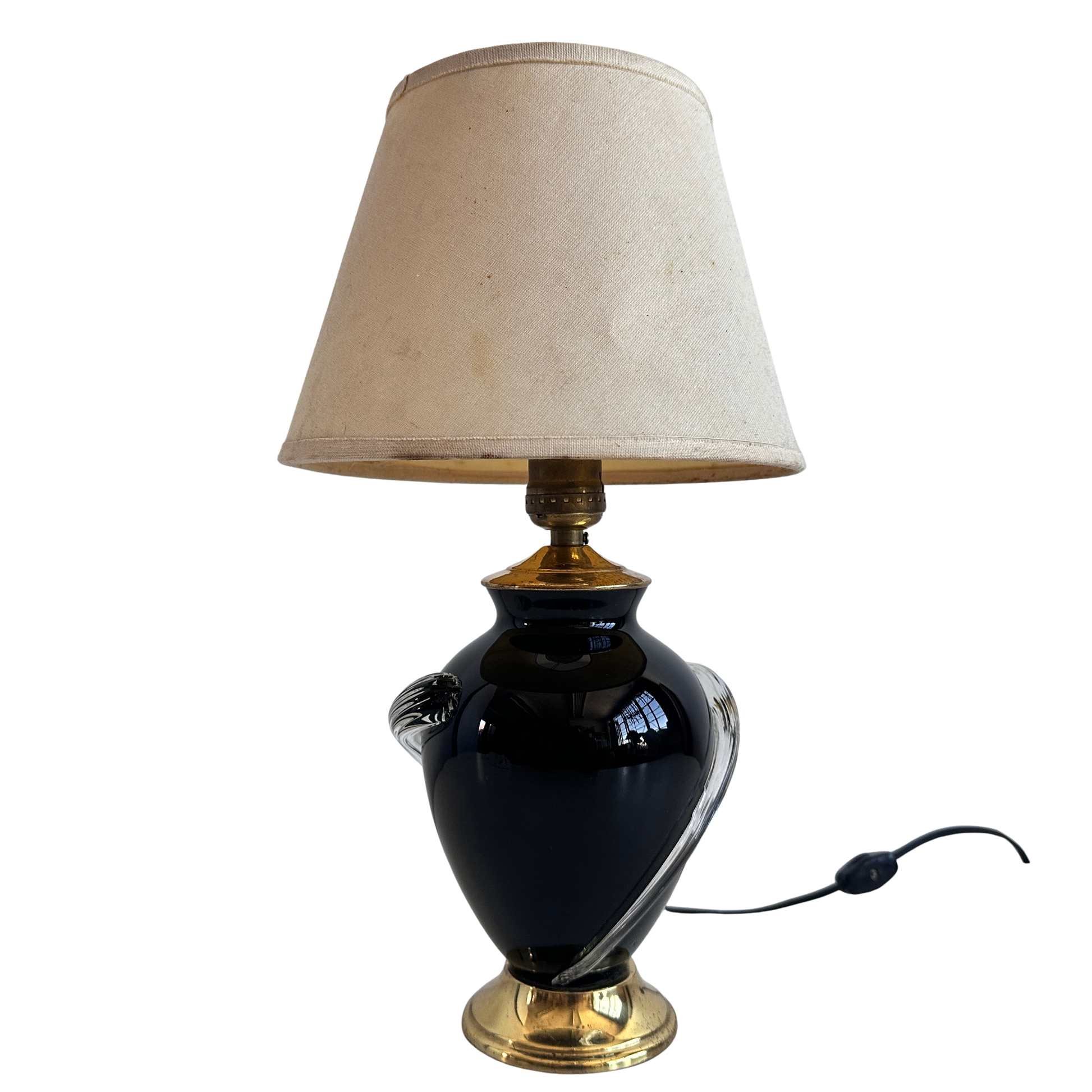 LI024 BLACK, GOLD, & GLASS TABLE LAMP WITH DISTRESSED SHADE
