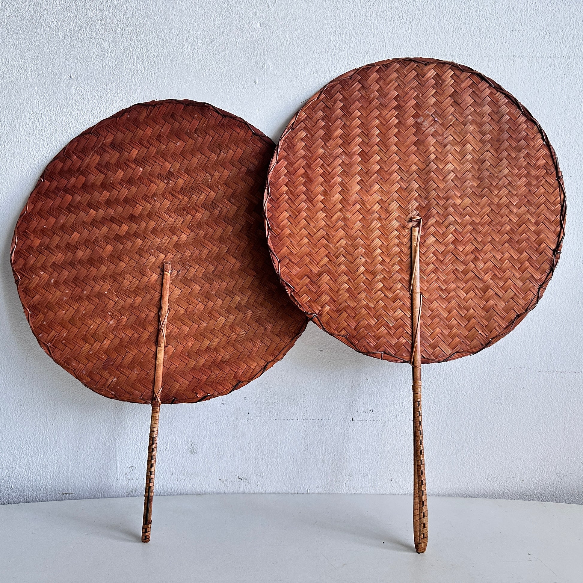 OB065 PAIR OF BAMBOO WOVEN HAND FANS