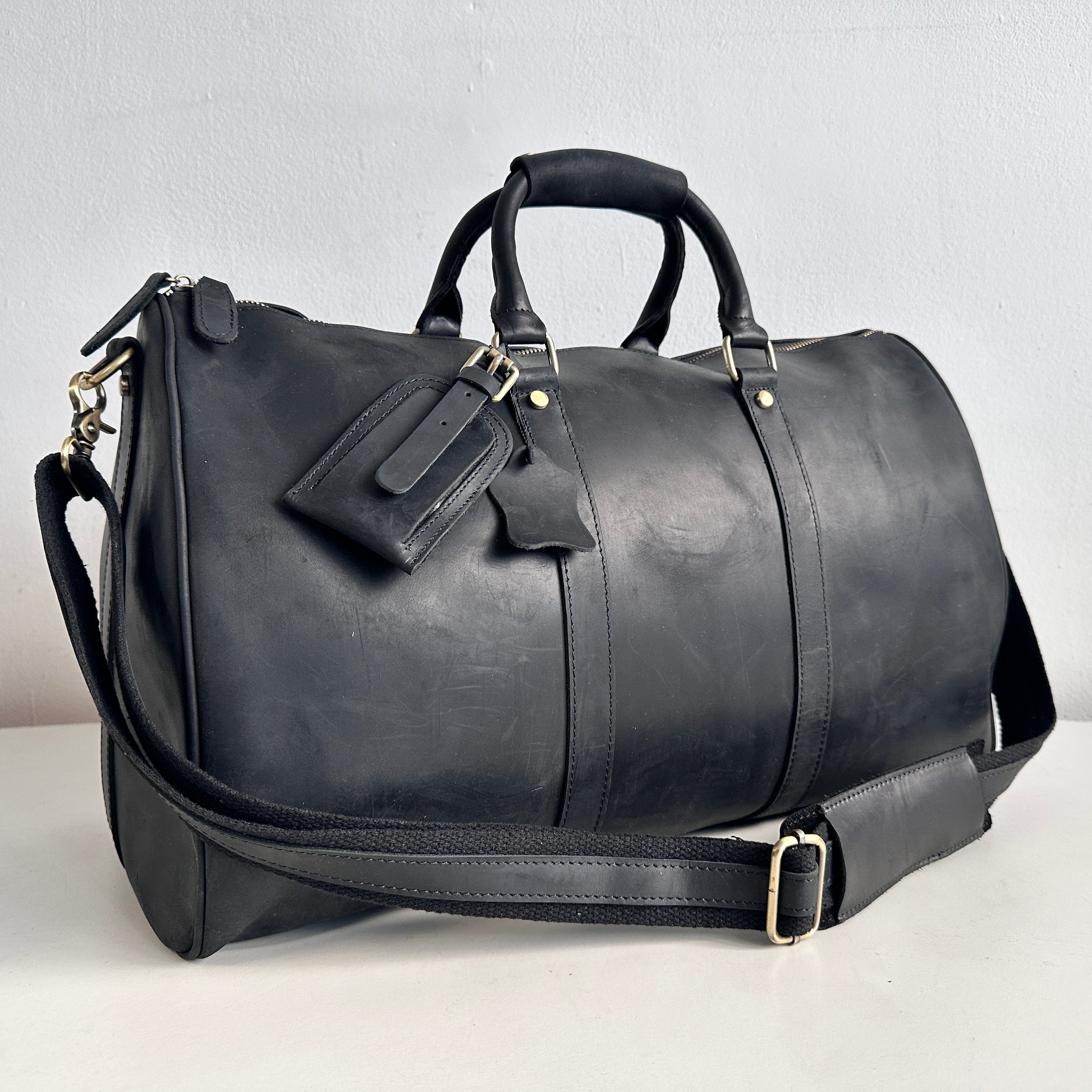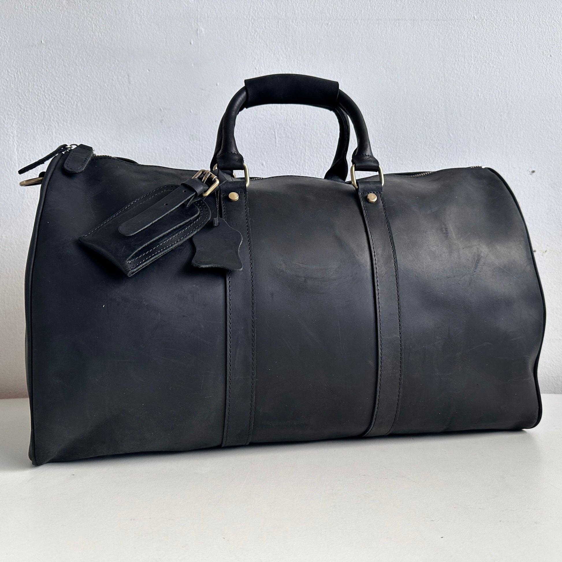 TL011 BLACK LEATHER DUFFEL BAG