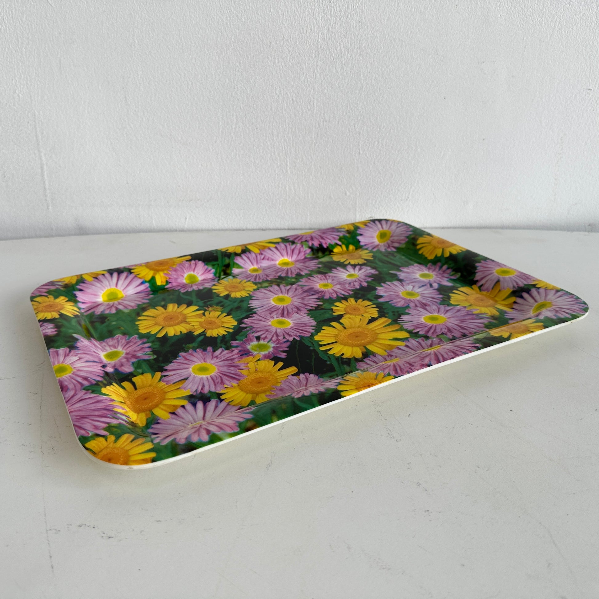 TT107 LARGE PLASTIC TRAY WITH PINK & YELLOW DAISIES