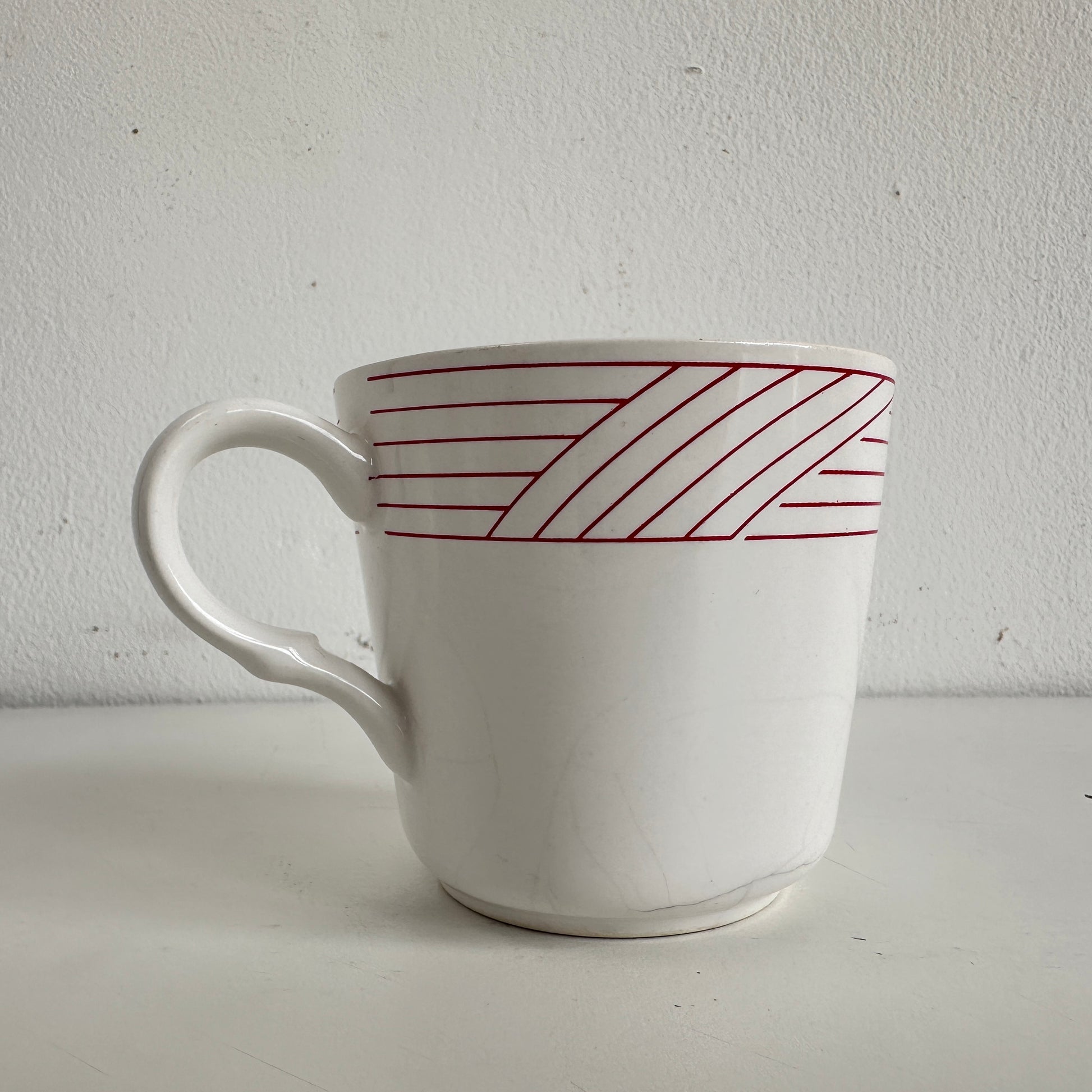 TT111 SET OF TWO RED STRIPE PATTERN CERAMIC MUGS