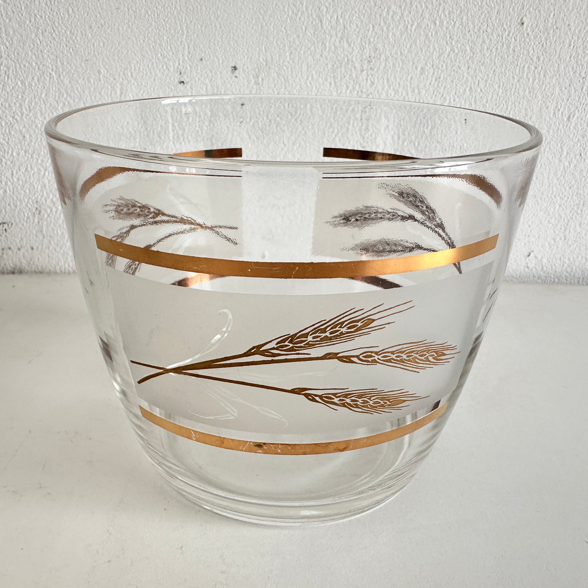 TT136 VINTAGE FROSTED GLASS ICE BUCKET WITH GOLD WHEAT DETAIL