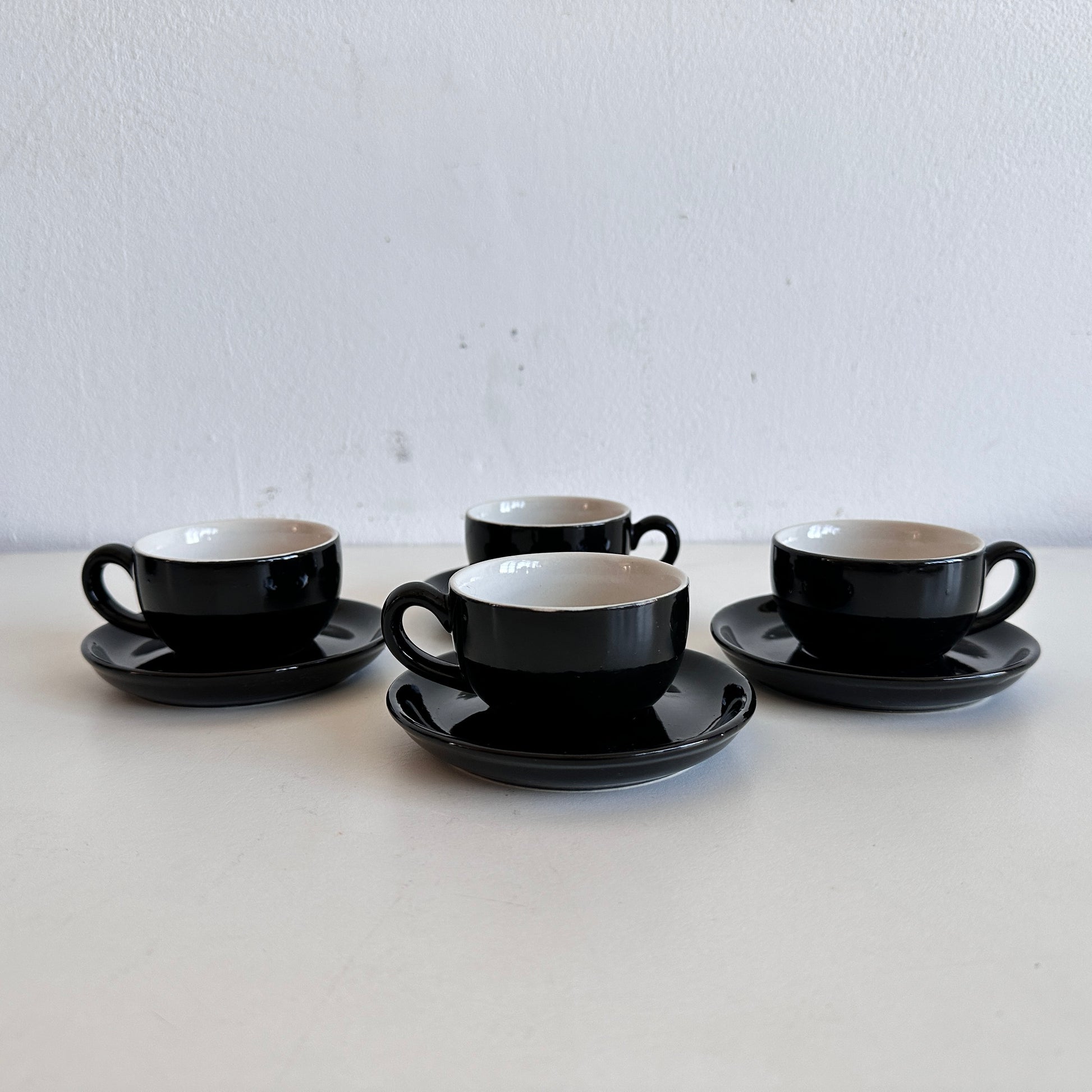 TT143 SET OF 4 BLACK AND CREAM ESPRESSO CUPS