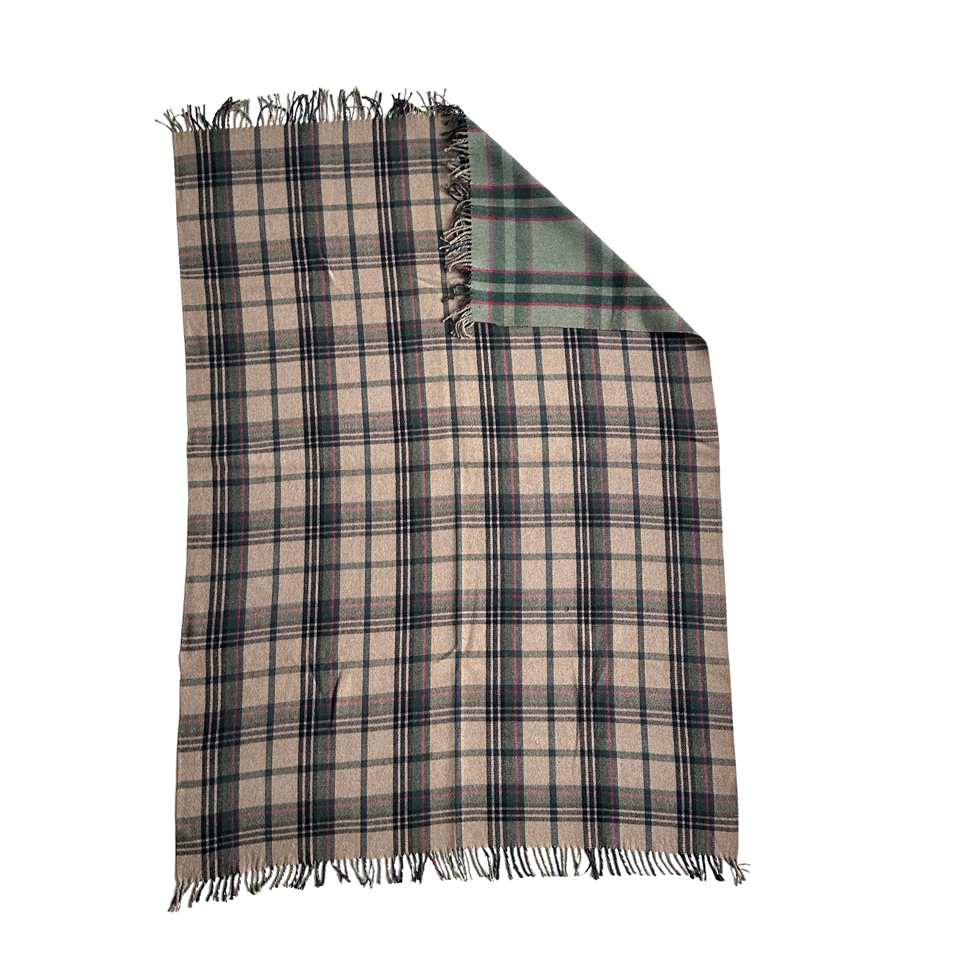 TW005 GREEEN, RED, & TAN WOOL THROW BLANKET